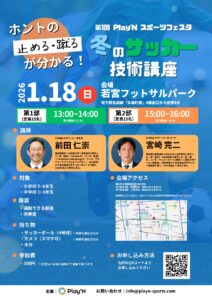 まず初めに、2026年1月に『第1回 Play'Nスポーツフェスタ 〜「ホントの止める・蹴るが分かる!冬のサッカー技術講座」〜』と題したサッカークリニックを実施します。